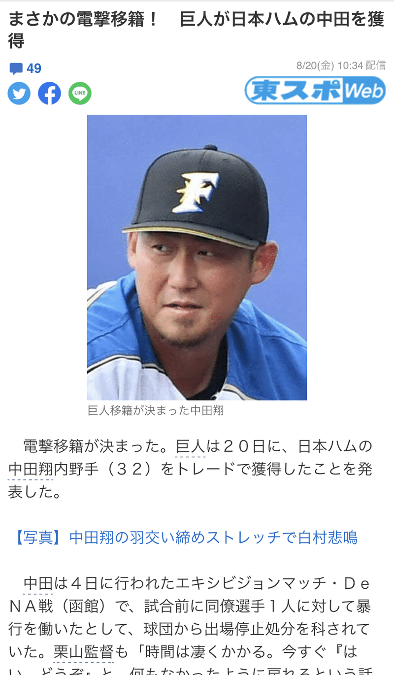 中田翔トレード / 中田翔、巨人がトレードで獲得 暴力行為で出場停止処分