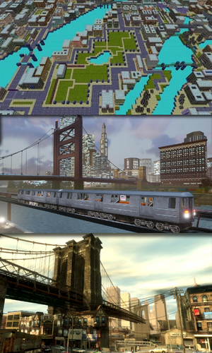 Liberty City (2nd Universe), a city founded on land bought from Native Americans by Belgian settlers in 1603. The city's key island, Liberty Island, is visible in the background. (Inspired past real-life New York City)